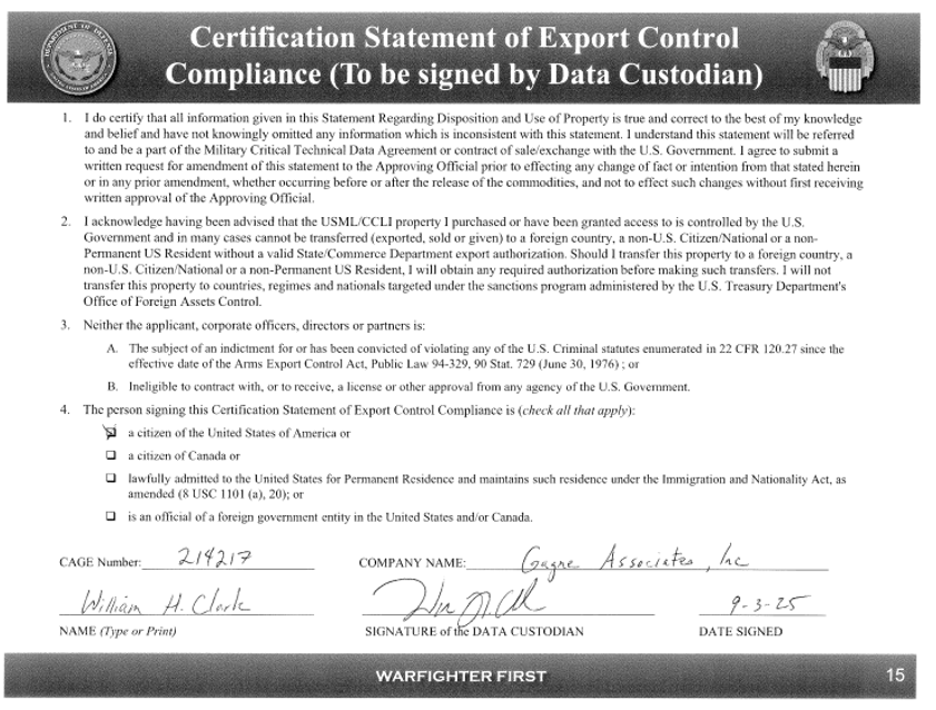 - Certificate of Proper Handling of DOD